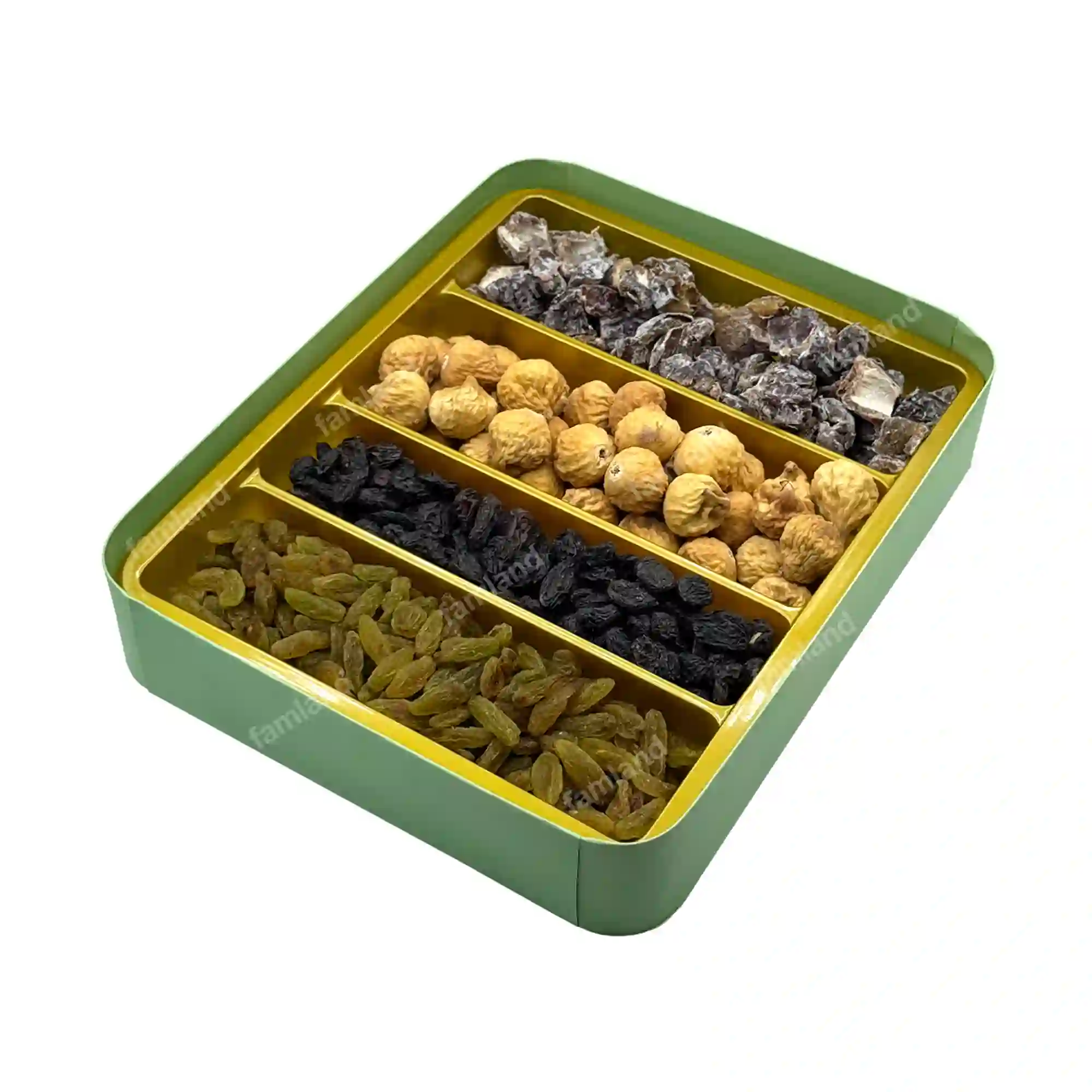 جعبه هدیه قند پهلو فاملند ترکیبی از خشکبار طبیعی و سالم است که شامل انجیر خشک، کشمش سبز، مویز و چیپس خرما میباشد. این جعبه با بستهبندی شیک و مناسب برای هدیه، انتخابی عالی برای تشکر از عزیزان یا پذیرایی در مهمانیها است. با طعمی شیرین و طبیعی، گزینهای مناسب برای سبک زندگی سالم و همراهی با چای یا دمنوش.